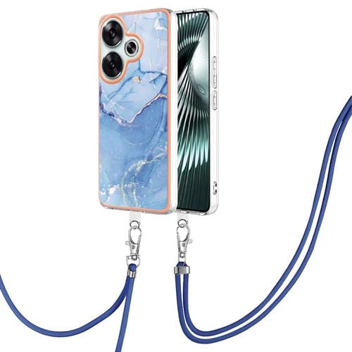 Funda para Teléfono Xiaomi Poco F6 5G con Imd de Doble Cara y Galvanoplastia de Mármol con Cordón (Azul 018)