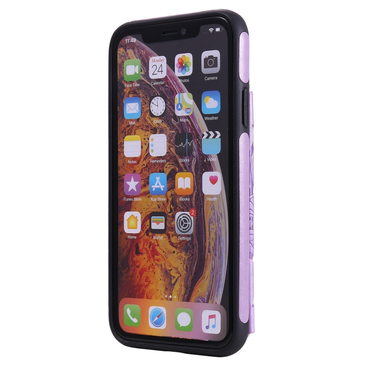 Funda Protectora iPhone Xr Patrón Flores Soporte Ranuras Tarjetas Marco Fotos (Púrpura)