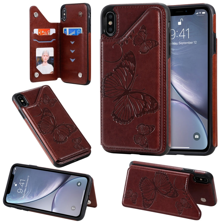 Funda Protectora iPhone Xs Max Patrón Mariposa Soporte Ranuras Tarjetas Marco Fotos (Marrón)