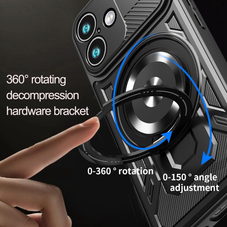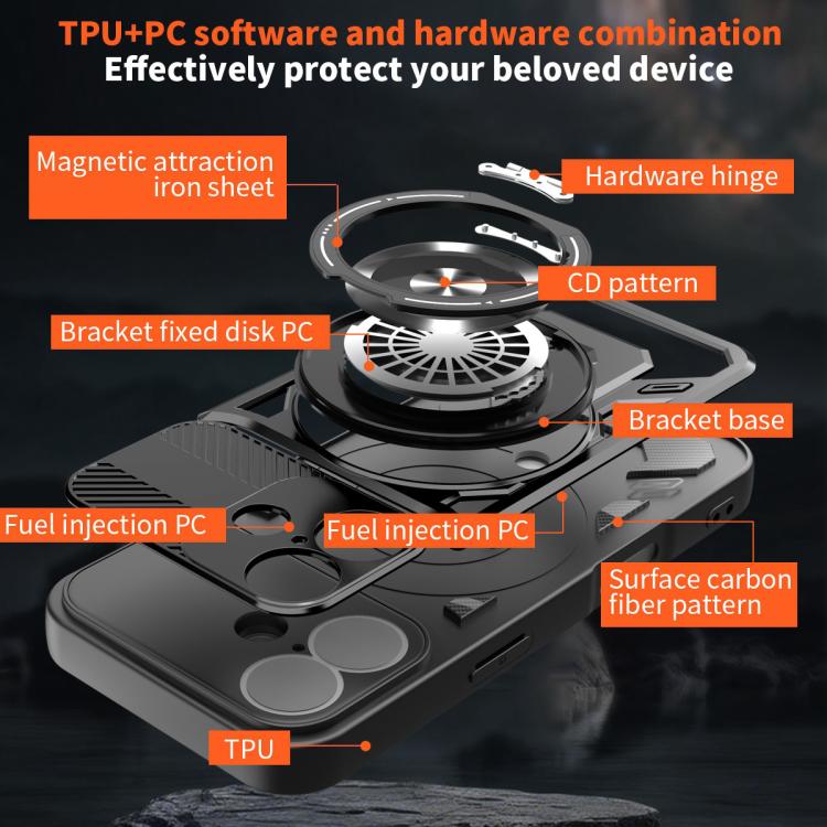 6. Soporte giratorio de 360 ​​grados: El soporte integrado ofrece el ángulo de visión ideal tanto en orientación horizontal como vertical.Al plegarse, se alinea perfectamente con la parte trasera de la funda, manteniendo un perfil delgado para facilitar su deslizamiento en el bolsillo.