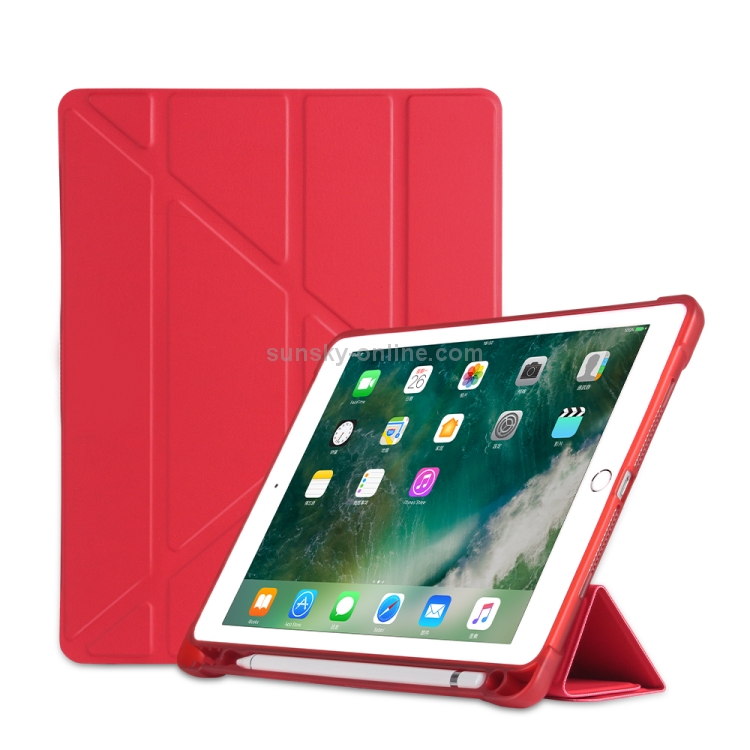 Funda Protectora TPU para iPad 9.7 (2018) 9.7 (2017) Air Air2 con Soporte y Ranura para Bolígrafo (Rojo)
