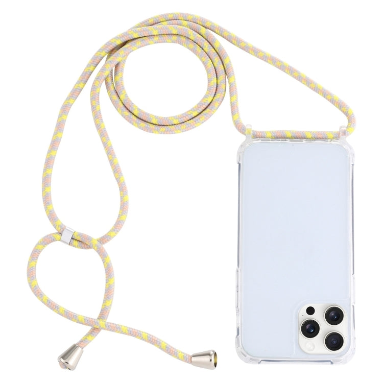 Funda Protectora para iPhone 16 Pro Acrílico Transparente a Prueba de Golpes con Cordón (Amarillo, Rosa y Gris)