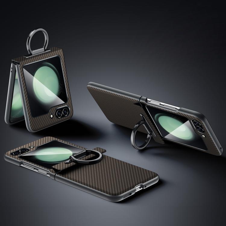 Funda SULADA 600D con textura de Kevlar para Samsung Galaxy Z Flip5, a prueba de golpes, de PC, con soporte para anillo (marrón)