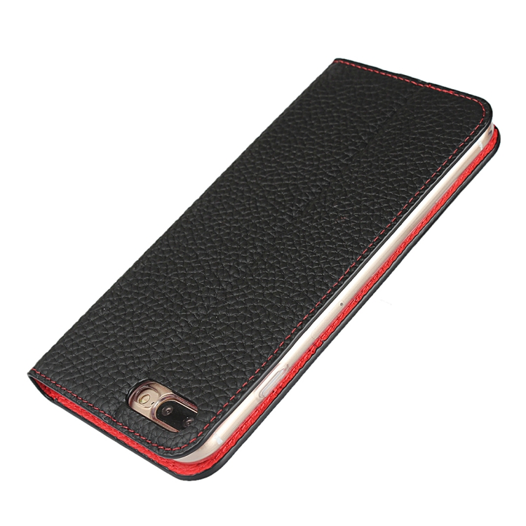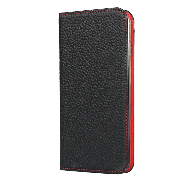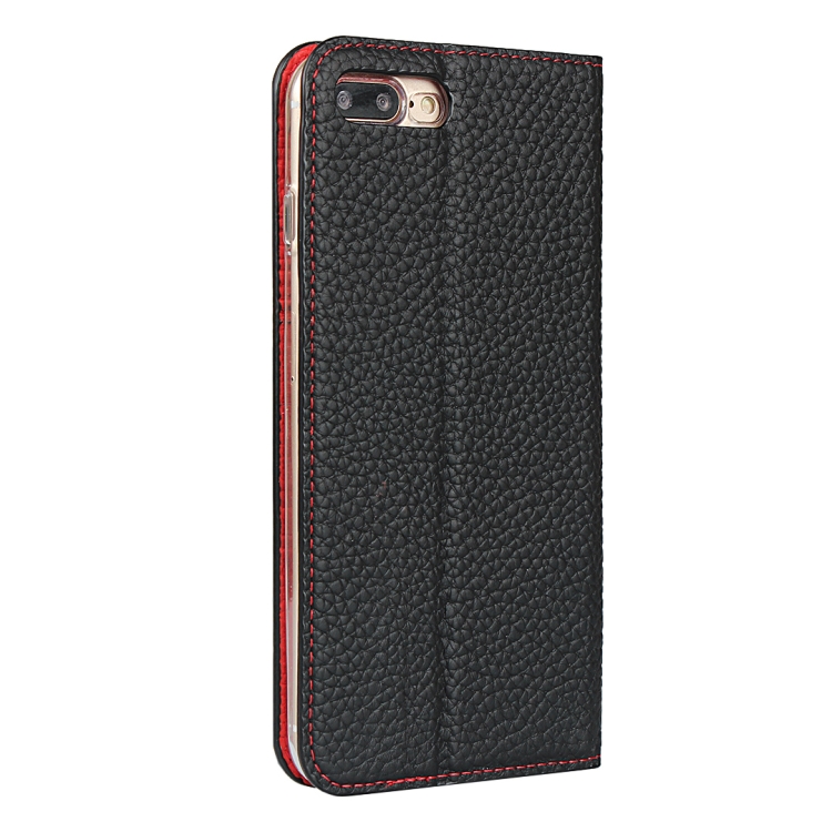 Funda Telefónica Cuero Genuino Litchi para iPhone 7 Plus y 8 Plus (Negro)