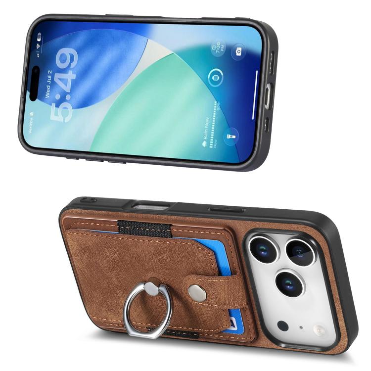 Funda tipo cartera con anillo y tarjetero para iPhone 17 Pro Max, estilo retro, con tacto de piel (marrón)