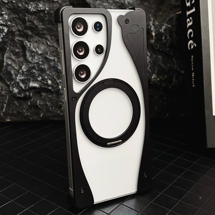 Funda transparente MagSafe para Samsung Galaxy S24 Ultra 5G, sin marco metálico, con rotación de 360 grados (negro)
