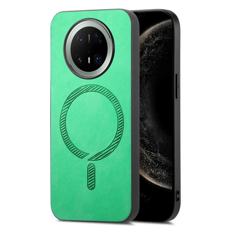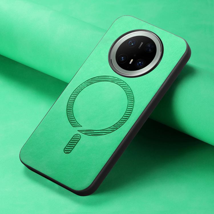 Funda Trasera Pu Magsafe para Huawei Mate 70 Pro (Verde) Color Sólido Retro