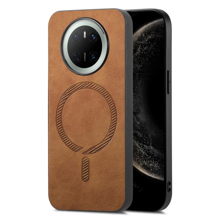 Funda Trasera PU Magsafe Retro para Huawei Mate 70 (Marrón)