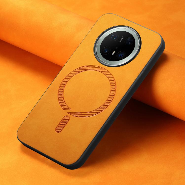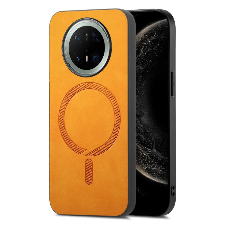 Funda Trasera PU Magsafe Huawei Mate 70 Pro (Amarilla) Color Sólido Retro