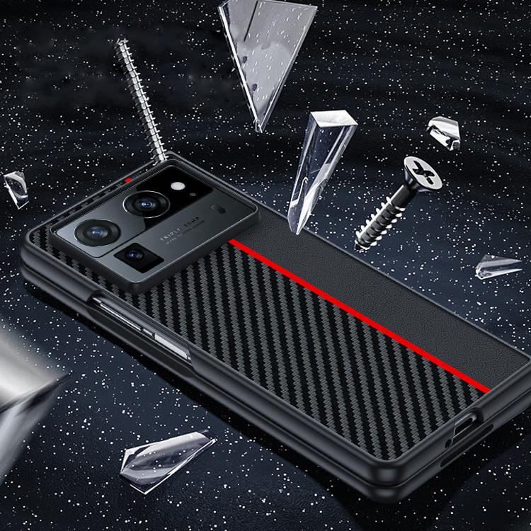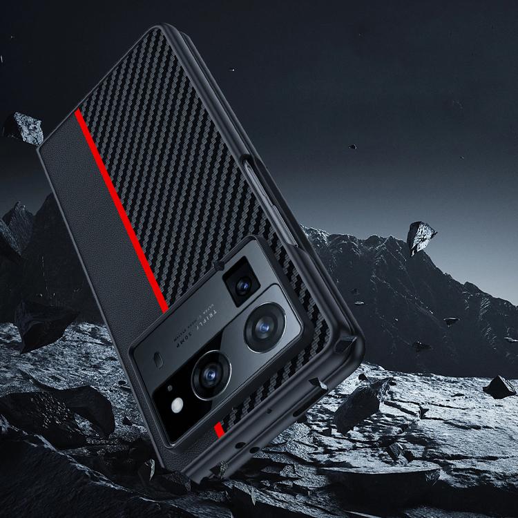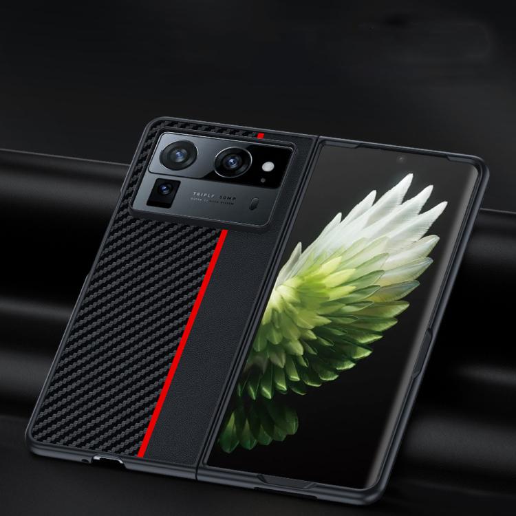 Funda ultrafina con textura de fibra de carbono para Tecno Phantom V Fold2 (negro y amarillo)