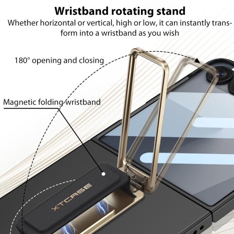 Funda ultrafina GKK con correa de muñeca integrada y soporte giratorio para Samsung Galaxy Z Flip7 5G (plateada)