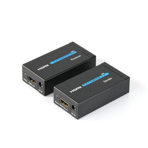 - Resolución soportada: 1080p; Extensión de Señal HDMI hasta 60 metros mediante Cable de red RJ45; Peso: 390 gramos; Incluye receptor y transmisor