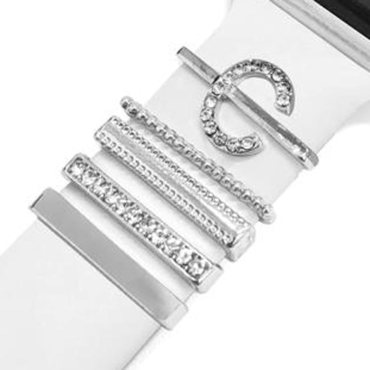 Juego de 5 anillos decorativos de metal con letras para reloj inteligente, estilo C