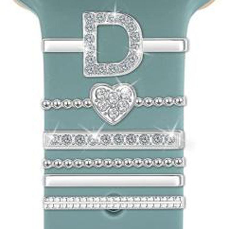 Juego de 6 correas de silicona universales para reloj inteligente, accesorios de metal decorativos, tamaño D (plata)