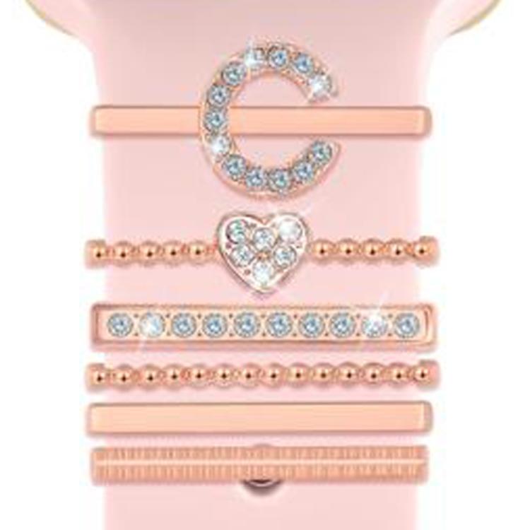Juego de 6 correas de silicona universales para reloj inteligente, anillos decorativos de metal, talla C (oro rosa)
