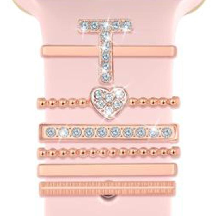 Juego de 6 correas de silicona universales para reloj inteligente, anillos decorativos de metal, talla T (oro rosa)