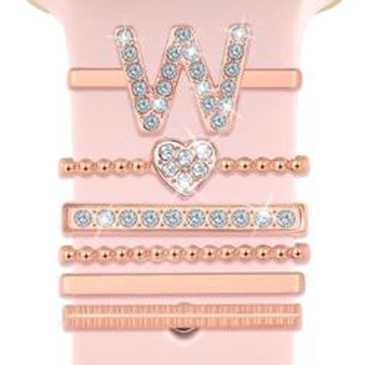 Juego de 6 correas de silicona universales para reloj inteligente, anillos decorativos de metal, tamaño: W (oro rosa)