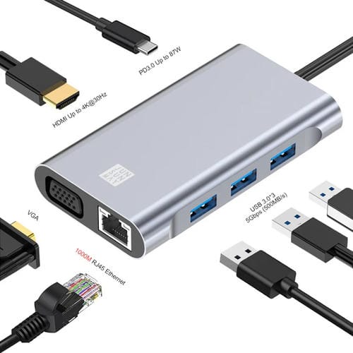 Adaptador Estación de Acoplamiento Junsunmay 7 en 1 Tipo-C a 4K HDMI VGA 1000M Ethernet USB C Hub
