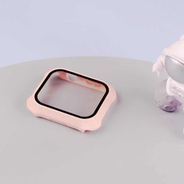Marco de PC Esmerilado 2 en 1 y Funda Protectora Vidrio Templado para Apple Watch Series 8/7 41mm (Rosa)