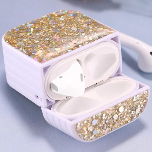 Funda Protectora para AirPods 1/2 Glitter Sequins para Auriculares Inalámbricos (Dorado)