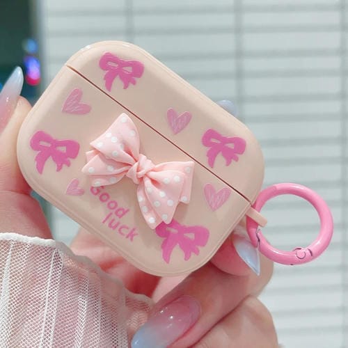 Funda Protectora para AirPods Pro 3D Polka Dot Bowknot para Auriculares Bluetooth (Rosa)