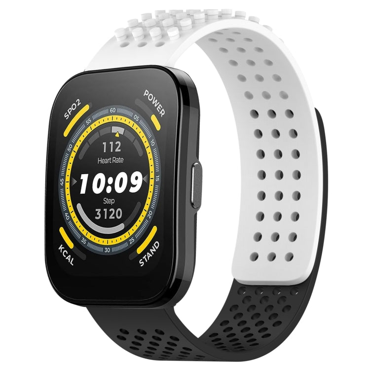 Correa de Silicona para Amazfit Bip 5 con Puntos 3D Transpirables y Orificios de 22mm (Blanco + Negro)