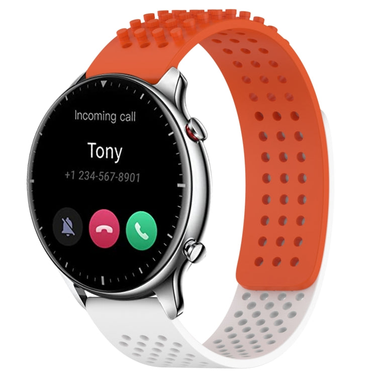 Correa de silicona para Amazfit GTR 2 con puntos 3D transpirables y orificios de 22mm (Naranja + Blanco)