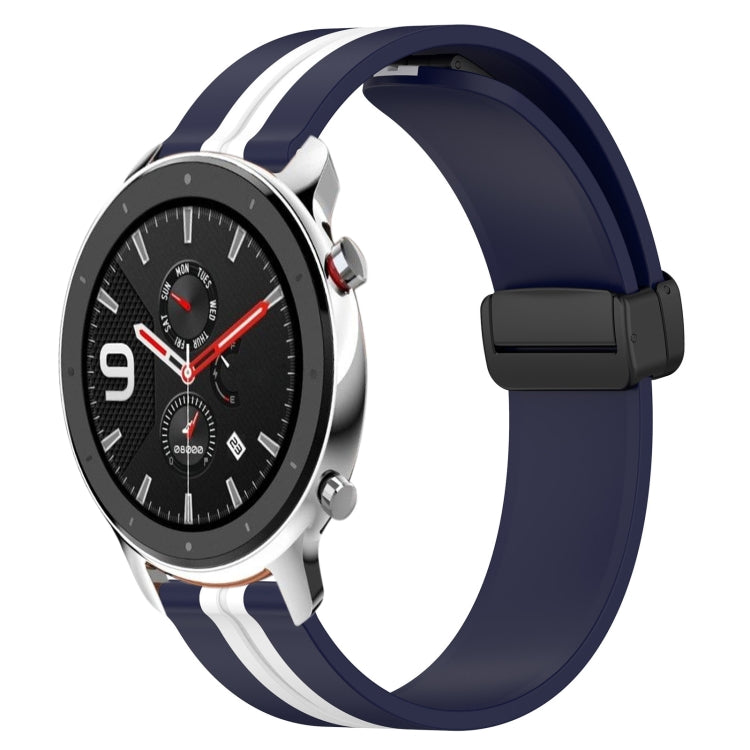 Correa de Reloj para Amazfit GTR 4 22mm Silicona con Cierre Magnético Plegable (Azul Medianoche + Blanco)