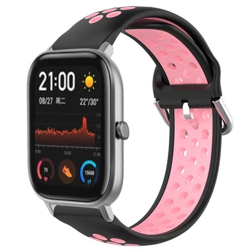 Correa de Reloj Amazfit GTS 20mm Silicona Deportiva Transpirable Perforada (Negro + Rosa)
