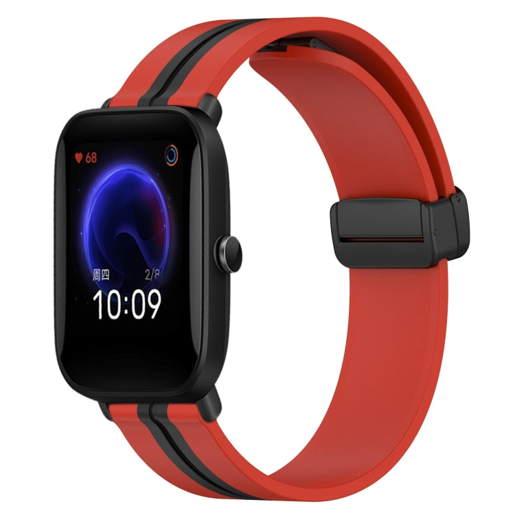 Correa de Reloj para Amazfit Pop 20mm silicona con cierre magnético plegable (Rojo + Negro)