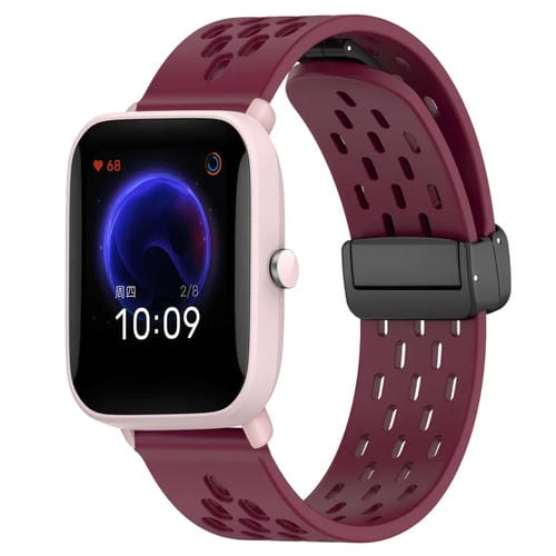 Correa de Silicona para Amazfit Pop Pro con Cierre Magnético Plegable 20mm (Borgoña)