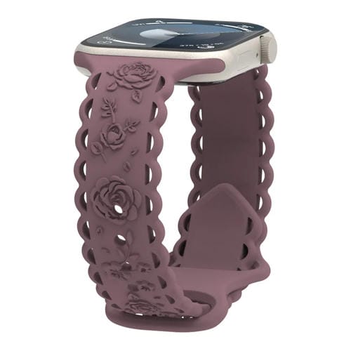 Correa de Silicona para Apple Watch Se 2022 44mm con Relieve de Rosa 3D (Púrpura Ahumado)
