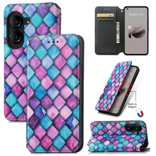 Funda de Cuero Magnética Caseneo para Asus Zenfone 10 con diseño Escamas (Morado)