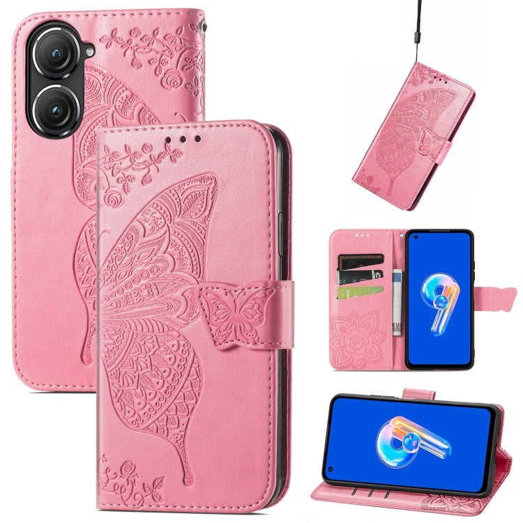 Estuche para Asus Zenfone 9 Butterfly Love Flower de Cuero en Relieve (Rosa)