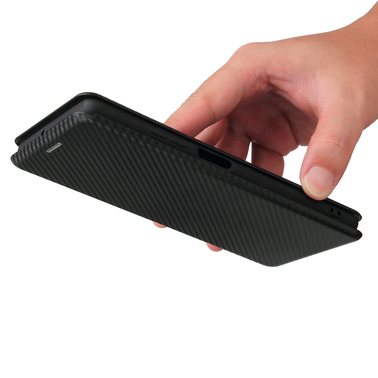 Funda para BlackView A100 Fibra de Carbono Textura Magnético Horizontal Flip TPU PC con Ranura para Tarjeta (Negro)