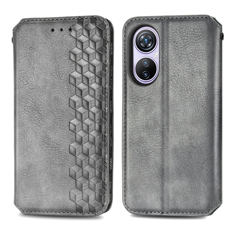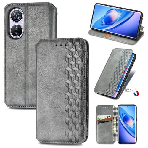 Funda de Cuero Magnético Prensado para BlackView A200 Pro Cubic Grid (Gris)
