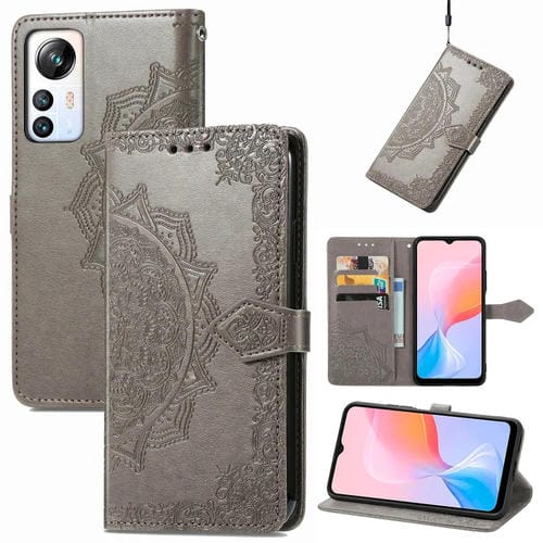 Funda de Cuero en Relieve Mandala Flower para BlackView A85 (Gris)