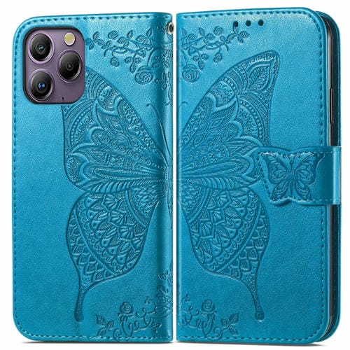 Funda para Teléfono BlackView A96 Cuero con Relieve Flor de Amor y Mariposa (Azul)