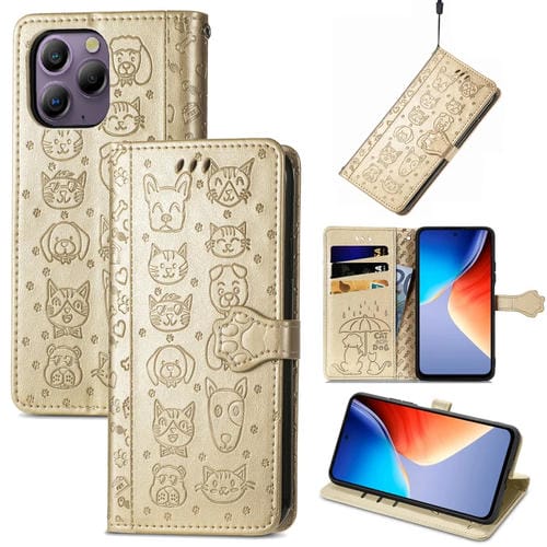 Funda para Teléfono BlackView A96 Cuero con Relieve Perros y Gatos (Dorado)