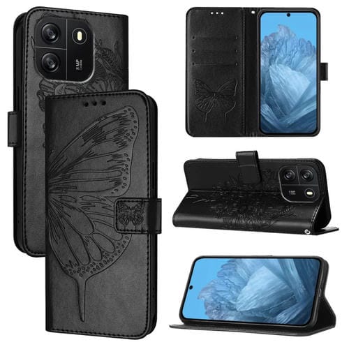 Funda de Cuero para BlackView Wave 6C con Mariposa en Relieve (Negro)