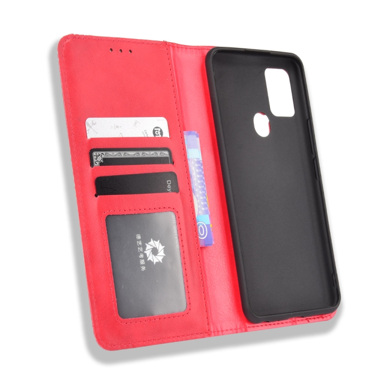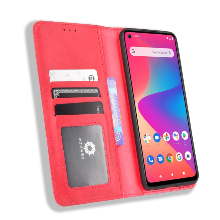 Funda de Cuero para Blu G91 Hebilla Magnética Retro Crazy Horse Textura Horizontal Flip con Soporte y Ranuras para Tarjetas (Rojo)