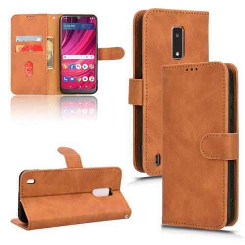 Funda de Cuero con Tapa Magnética para BLU View 4 Skin Feel (Marrón)