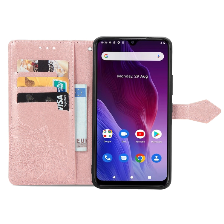 Funda para Cubot P60 Mandala Flower de Cuero En Relieve (Oro Rosa)