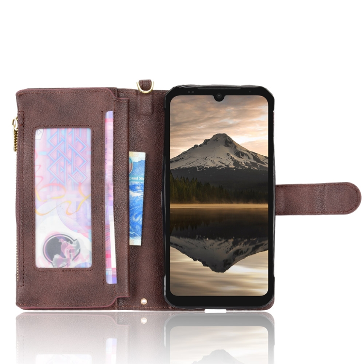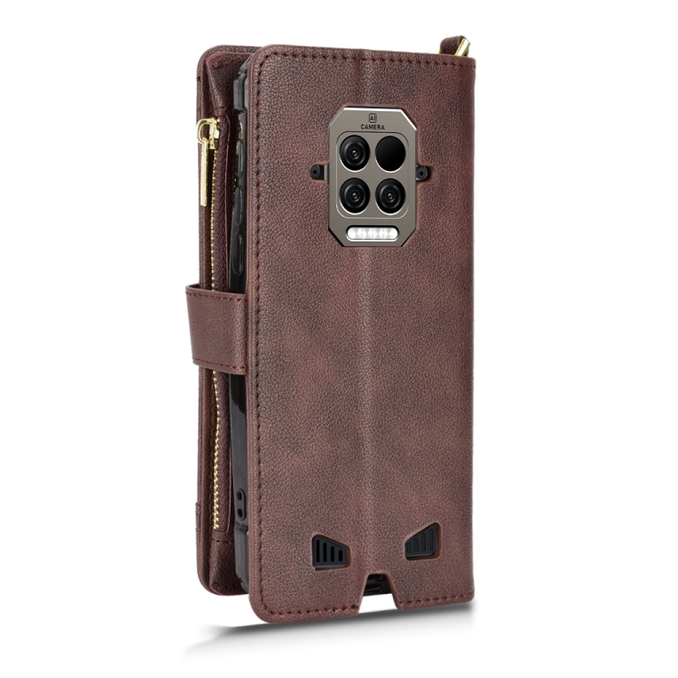 Funda de Cuero Doogee S86 / S86 Pro Litchi Texture Camper Funcional (Marrón)