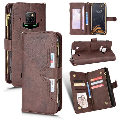 Funda Cuero con Cremallera para Doogee S88 Pro y S88 Plus Litchi Texture (Marrón)
