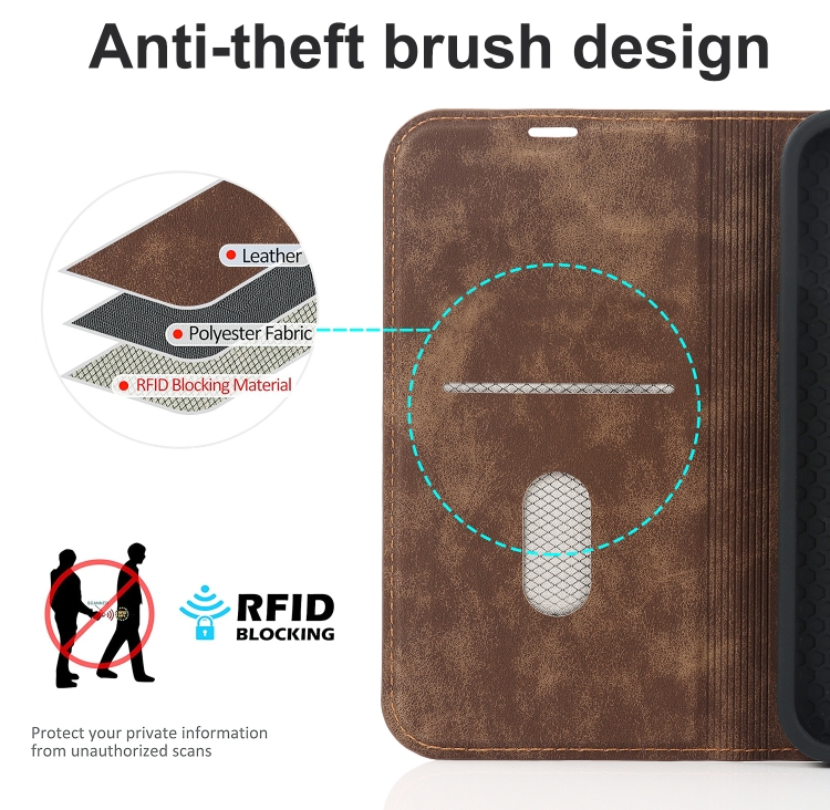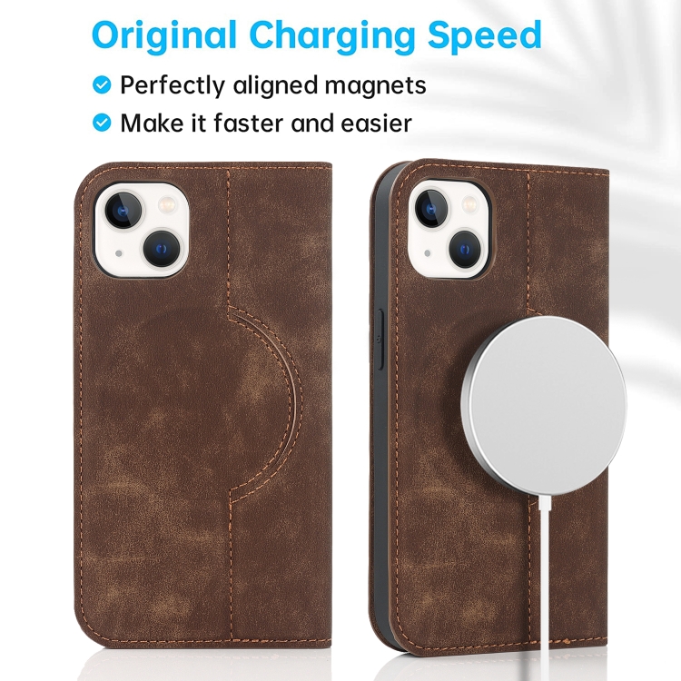 Funda para iPhone 13 Mini Wireless Charging Magsafe Leather Case (Café)