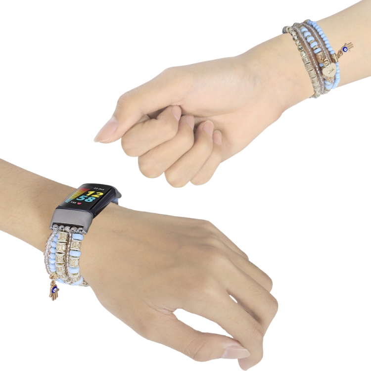 Correa Para Fitbit Charge 5 Palm Bead Chain Watch Band (Azul)