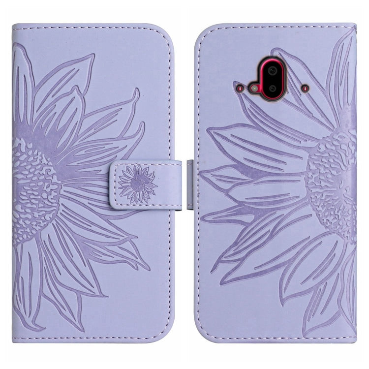 Funda Flip de Cuero Fujitsu Arrows F-52B con Cordón y Diseño Sun Flower (Púrpura)