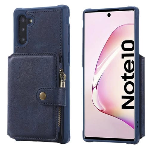 Estuche Protector para Galaxy Note 10 con Cremallera Ranuras Tarjetas Soporte Fotos Billetera (Azul)