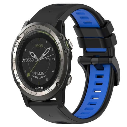 Correa de Silicona Deportiva 26mm para Garmin D2 Charlie (Negro + Azul)